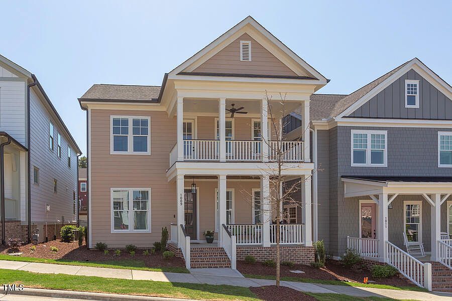 Offer received. Deadline for all offers is 5 pm tomorrow. Like new, this Charleston style home with double porches welcomes you home! Spacious open floorplan features a chefs kitchen with walk in pantry, stainless appliances, and large island. A wall of windows in the Family Room streams in natural light. Bedroom #4 on the main level currently used as an office makes a superb guest room with access to a full bath. Dining Room with pocket doors, currently used as a playroom, would also make a great office. Large mudroom with access to the side porch and garage. Upstairs features the primary suite with access to the upper level porch. Two additional bedrooms, full bath, and laundry room. Finished third floor has a sizable bonus room with full bath and double walk in closets. Conveniently located to the American Tobacco Trail, and CM Herndon Park with multiple sports fields. Duke, UNC, RTP, RDU nearby.