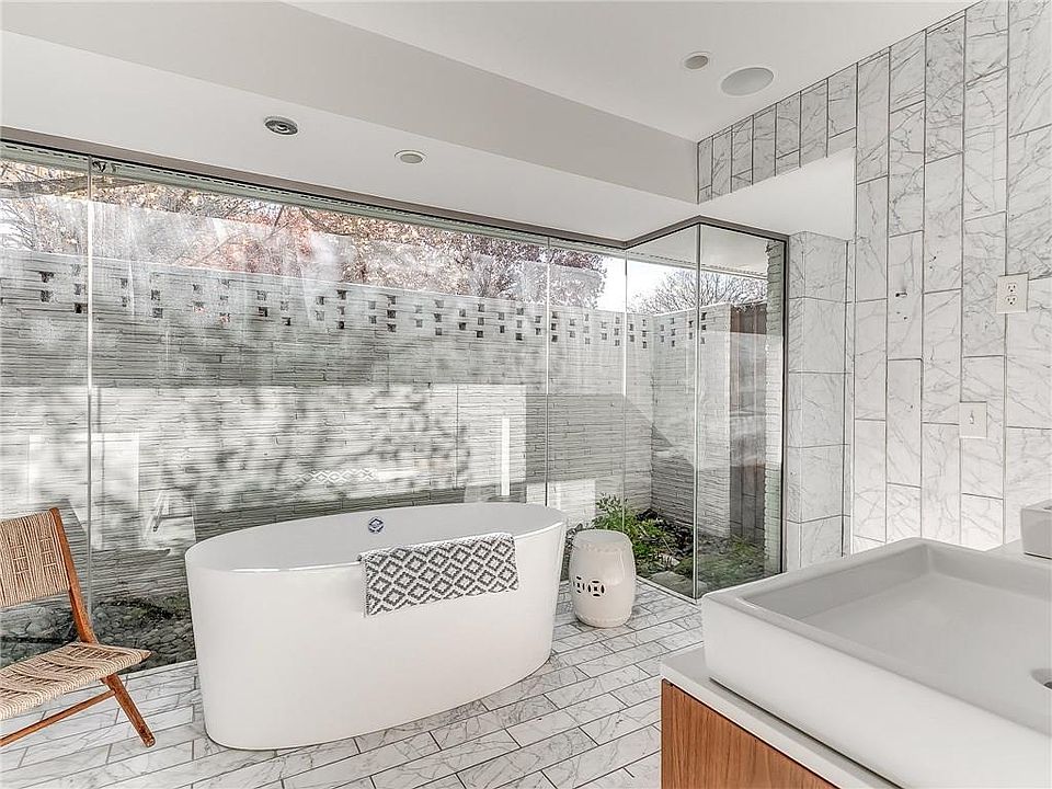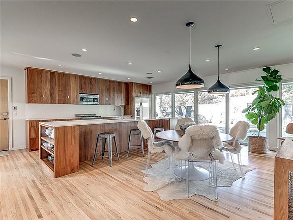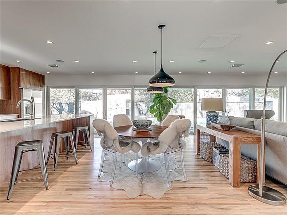 Unique Mid-Century Modern home near OU campus! Completely remodeled in 2012, this 3 bedroom home features gorgeous black walnut wood work and cabinetry, an open floor plan with beautiful 1.5" maple hardwood floors throughout, top of the line appliances and fixtures, 2 full bathrooms and a powder room, separate den/family room/study joined by a beautiful 2 sided wood burning fireplace, sliding doors out to back patio, and so much more. See attachments for full list of renovations/improvements. The home sits on a lovely treed lot and features an electronic gated drive and a newly refinished pool.