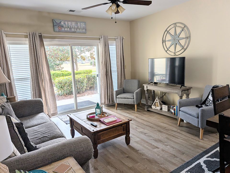 Completely furnished 2 bedroom 2 bathroom. Ground floor, no steps at all! In Carolina Forest area. Fully furnished kitchen with brand new stainless steel appliances! In-unit laundry. Queen bed and King bed. 3 Smart TV's. LVP floors thruout. Keurig Dual coffee maker, toaster oven too! Feels like home. Sorry no pets per HOA for renters. This is strictly No Smoking, No Vaping, No Cigarettes. No motorcycles, trailers or commercial vehicles per HOA. Close to grocery store, restaurants, gas, car wash. 10 minutes to the beach. Quiet community. Condo not suitable for children. In unit fire sprinkler system. Access to Pool on site. This condo is managed by the Owner. Available August 1st for 9 months or 12 months lease. Wifi, cable and electric* included. 9 month or 12 months lease. Separate charge for electric bill over $100/month. No pets allowed by HOA. $1000 damage deposit. $150 lost pool key charge. Exit cleaning fee to be determined. No commercial vehicles, motorcycles or trailers, RV's. You can hire my cleaner for regular cleanings at your expense. Sheets and towels negotiable.