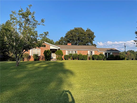 Family owned for generations! Brick home in the Country, sits on approximately 2 +- acres. Enter front door into a large living room with pine paneling, features brick fireplace and double windows, open to formal dining room. side door enter into Country kitchen with plentiful cabinets, a built in wall gas oven and gas stovetop , open to a large breakfast room with fireplace (insert) and built in cabinets. Three large bed rooms each with walk in closets. Master features built in desk and shelves. Two bathrooms each with step in showers. Hall pantry and a walk in closet in the living room, this house has a lot of storage space including the back glassed in porch with washer and dryer hook ups and wash sink. Well water, septic tank, old storm shelter, original smoke house, garden area, fig trees ,muscadine vines, open garage, old tractor barn and much more!!