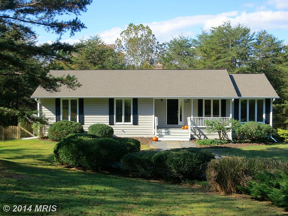 Beautifully updated situated on 7.6 acres of rolling countryside. Charming covered front porch, open floor plan, vaulted ceilings, brick masonry fireplace,large expansive windows w/gorgeous views. Updated eat-in kitchen w/maple cabinets & corian counters.Renovated throughout incl new paint in & out. Walk out lower level w/ newer family rm w/fieldstone wall & flu & bonus rm..as possible 4th BR