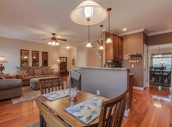 Fantastic Location, Almost All Brick Home, Beautiful Open Floor Plan w/Vaulted Foyer, 9' Ceilings, Hardwood Floors thru Most of Main Level, 3 Bedrooms+Office+Bonus! Tile Floors in All Baths & Laundry, Large Formal Dining Rm w/Wainscoting & Crown Molding. Kitchen has Upgraded 42'' Stacked & Staggered Cabinets, Solid Surface Counter Tops, Tile Back Splash, Stainless Steel Appliances w/Built-In Microwave, Upgraded Pendant Lighting Over Kitchen Bar, Additional Can Lighting,