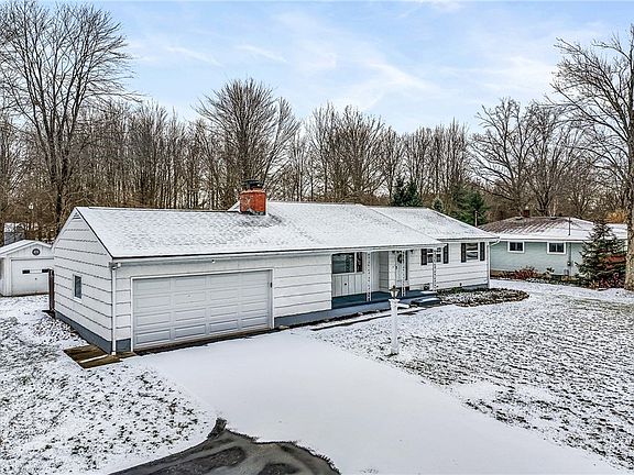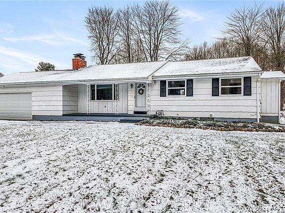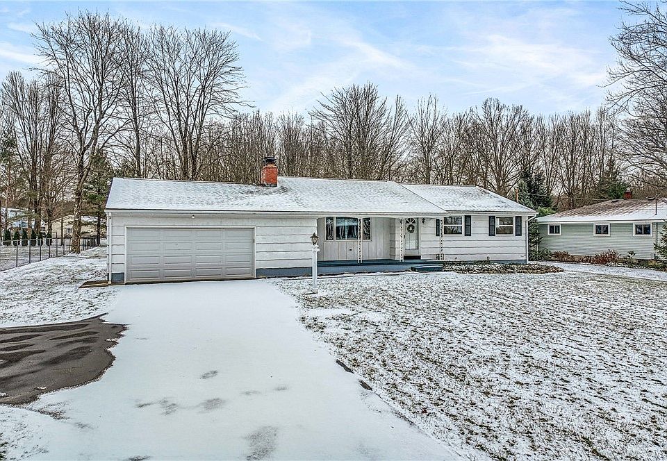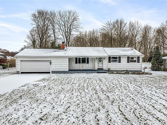 Make this charming well maintained ranch home in Howland yours! The owner built this home and the craftmanship is evident throughout, including the crown molding and hardwood floors. The entrance leads to a large living room with a picture window providing natural light and a beautiful wood burning fireplace. Adjacent to the living space is a dining room leading to the large four season, heated sunroom. The kitchen provides ample working space and pull-out drawers in the cabinets. The washer/dryer unit can be connected in the kitchen to provide all necessities on one floor and appliances stay with the home. The primary bedroom includes an attached bathroom, with an additional full bathroom located on the first floor. All bedrooms have hardwood floors. The sizable finished living space in the basement includes a wood burning fireplace to keep things cozy. The large lot provides privacy and plenty of space for enjoying the outdoors including a shed for additional storage. An attached two car garage leads into the kitchen allowing for easy access out of the weather. Located in Howland Schools and near major roads affords easy access in all directions.