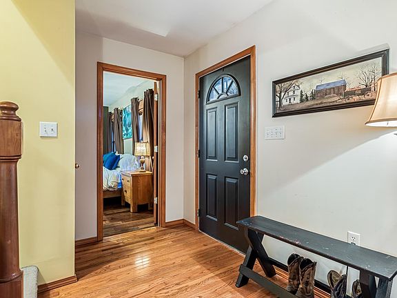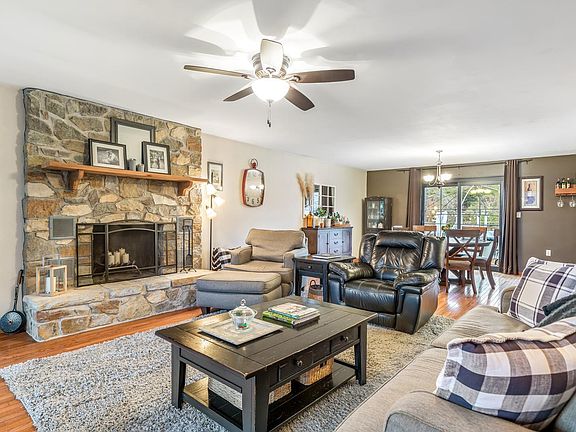 Come live your dream life with this charming farmhouse on 5 secluded acres in Elaine Ann Estates. Shared rights to a fully stocked 50-acre fishing lake! The covered front porch overlooks park like front yard. Oversized 2 car garage with plenty of space for storage and workshop. Cozy and inviting kitchen dining space leads into a beautiful living room featuring a stone wood burning fireplace. Wonderful space for entertaining on the patio just outside the custom sliding glass doors. Summer fun awaits in the above ground pool. Master bedroom and large master bath on the main floor. 2 bedrooms and bathroom on the second floor. Good sized unfinished basement with lots of possibility.
