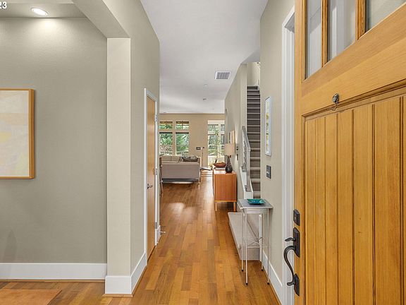 Chic modern design finds richness and warmth in seeming simplicity. This townhome exudes quality & style in great abundance. Two primary suites, 2.5 baths, plus media room. Gourmet kitchen w/ SS Appl, slab granite, & plenty of surface space. Living room w/peaceful nature views. Primary bedroom boasts a tile shower, soaking tub & walk-in closet. 2-car garage & extra-long driveway! Resort-like amenities include clubhouse w/pool. Convenient location to Nike, Intel, Providence Health & MAX system.