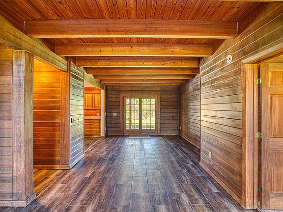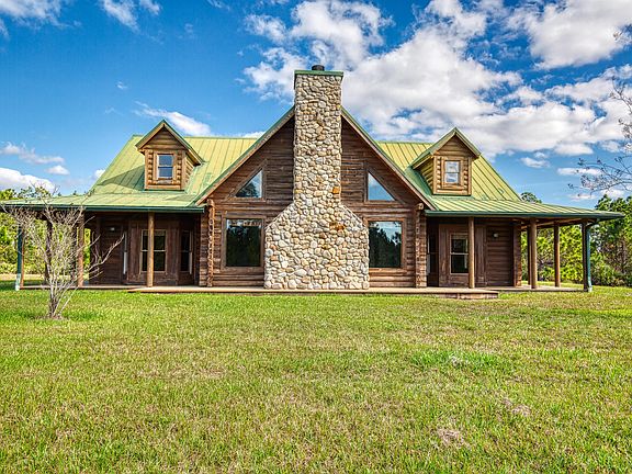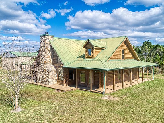 LOG CABIN ON 11+ ACRES! Looking for privacy in a gated community? This is the home for you. This 4 bedroom, 4 bath home features over 2900 living square feet and has updates including new flooring throughout. Large family room with high ceilings for an open feel and woodburning fireplace. Kitchen has updated stainless steel appliances, tons of cabinet and counterspace and gas stovetop. 2 bedrooms downstairs including the master that has a private master bath. Upstairs you will find 2 extra bedrooms both with their own full baths and a large bonus / loft area. Outside sit on your covered wrap around porch while looking out over your 11 acres and enjoying the wildlife. Covered porch for parking and enclosed extra storage space. Huge Pole barn for boat and RV with water and electric.