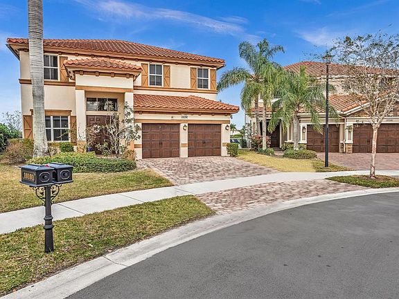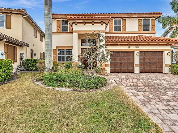 This stunning 5-bedroom, 4-bathroom Summit model home in Parkland's Mira Lago community is nestled on a rare oversized cul-de-sac lot with panoramic waterfront lake views. Boasting the largest pool in Mira Lago—a 40-foot pool, spa, and deck combo—this home features 20-foot ceilings, wood cabinets, stainless steel appliances, a gas stove, double oven, outdoor kitchen, and impact windows and doors. The layout includes a bedroom and full cabana bathroom downstairs, a luxurious master suite upstairs, and a Jack-and-Jill bathroom upstairs.
