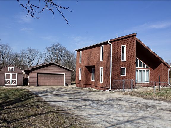 Amazing opportunity to put your own finishing touches on this unique A frame type property in Oakley township and Cerro Gordo Schools! Over 3 acres and multiple outbuildings, this property is peaceful, private and your own slice of heaven. Step inside and you will find vaulted ceilings, floor to ceiling wood burning fireplace/stove, screened in porch, 2 good sized bedrooms, 2 bathrooms, and a 3rd smaller bedroom. HVAC is newer and the roof is also newer. Tons of wildlife and plenty of room for all the toys! Fenced area, and also a large pasture area. Don't let this opportunity slip away!