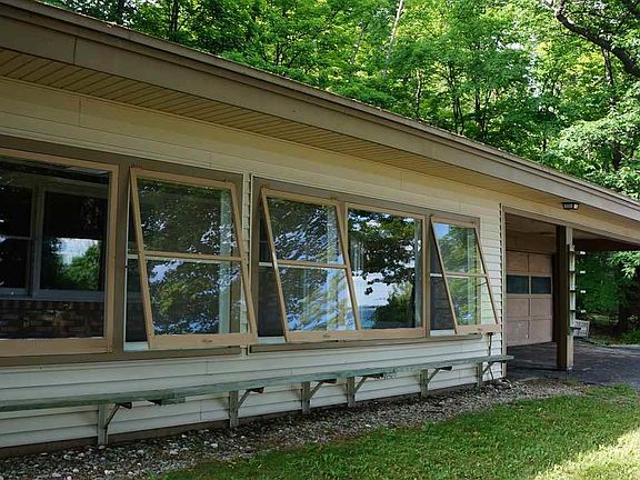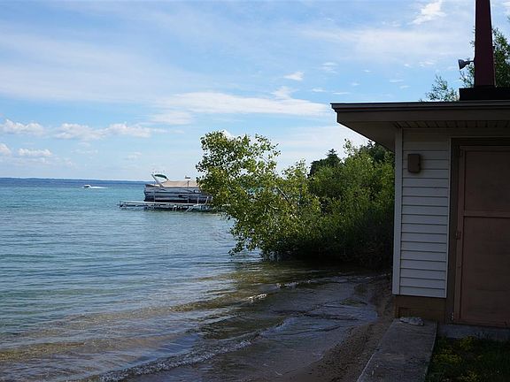 This home sits on over one acre of land with 200 feet of private frontage on East Grand Traverse Bay. Beautiful lot and well maintained 3 bedroom, 1.5 bath home. New carpeting and paint throughout. Charming built-ins throughout the home and lovely tongue and groove redwood walls in the living and dining rooms. Roomy foyer opens to a classic brick fireplace. Make sure to walk over to the water and see the boathouse--great possibilities there! Spacious workshop behind the 2-car garage.