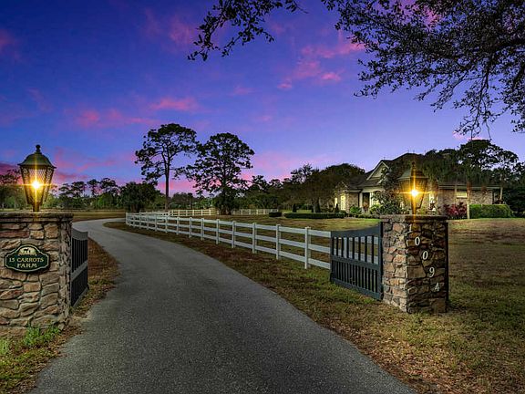 Are you looking for something rare yet also looking for quality and value without question! Uniqueness is the word that abounds from the moment you enter the welcoming stone pillared gates to an enchanted equestrian world of 13 Carrots Ranch. This beautiful ranch offers affordability and size to accommodate the serious equestrian enthusiast. Outside you will see a tasteful architectural design that exemplifies quality both inside and out. The home built in 2009 is designed for comfort yet Southern charm elegance. The beautiful wide plank wood flooring that abuts an oversize stone fireplace can be found complimenting much of the warm decor. The beamed ceiling rounds out the overall inviting warm ambience of a quality home.