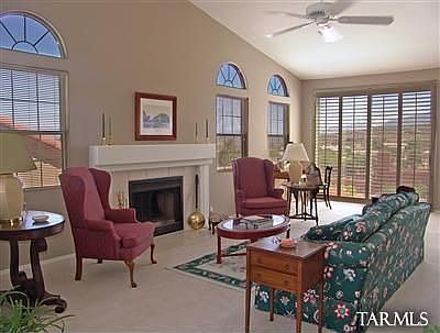 Prime view lot location at the top of the gated Oro Valley community of La Reserve, providing unobstructed mountain and Oro Valley views. Enter through a gated courtyard and double glass front doors into this updated and well maintained home. Great Room floorplan with high ceilings, clerestory windows, gas fireplace, and an adjacent Formal Dining area which looks out over the Patio. A Powder Room is located off the Great Room for the convenience of your guests. The efficient Kitchen is updated and offers a Breakfast Area. A short flight of 7 stairs leads you to the Bedroom wing with a private Master Suite plus two additional bedrooms which share a full bath. The Master has access to its own patio. Ceramic tile and carpet cover the main level and wood and carpet on the bedroom level. Brokered And Advertised By: Tycor Realty Co. Listing Agent: Jack Tyrrell