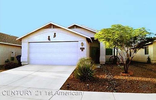 Rita Ranch Home - This rental consist of 3 bedrooms and 2 full baths. Tiled entry overlooks great room with custom raised hearth fireplace and soaring vaulted ceilings,double French doors open to covered patio and huge backyard. Ceramic tile through out the house. Gourmet kitchen features include light oak cabinets with roll out shelves,breakfast bar,generous pantry,dishwasher,electric oven/stove,fridge and disposal. Master bedroom offers large walk-in closets,garden tub, and dual vanities. Other amenities include central air conditioner,ceiling fans throughout,timed thermostat, and finished 2 car garage with remote opener. Vail school district. All this in a great neighborhood. Call Jesus Johnson for a an appointment at 520-260-6420. (RLNE2506746)