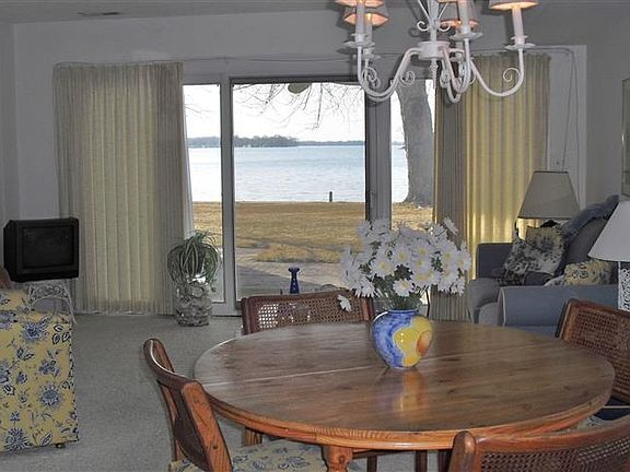 Beautiful sunset views of Lake Wawasee at this 3 bedroom, 1.5 bath condo at Runaway Bay. Pool, children's play area, and pier space included. Most furnishings can be included.