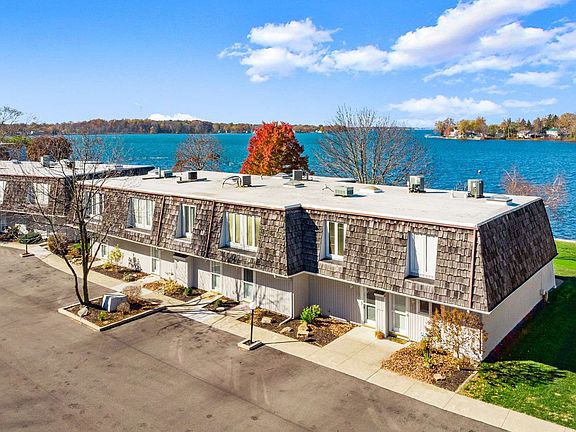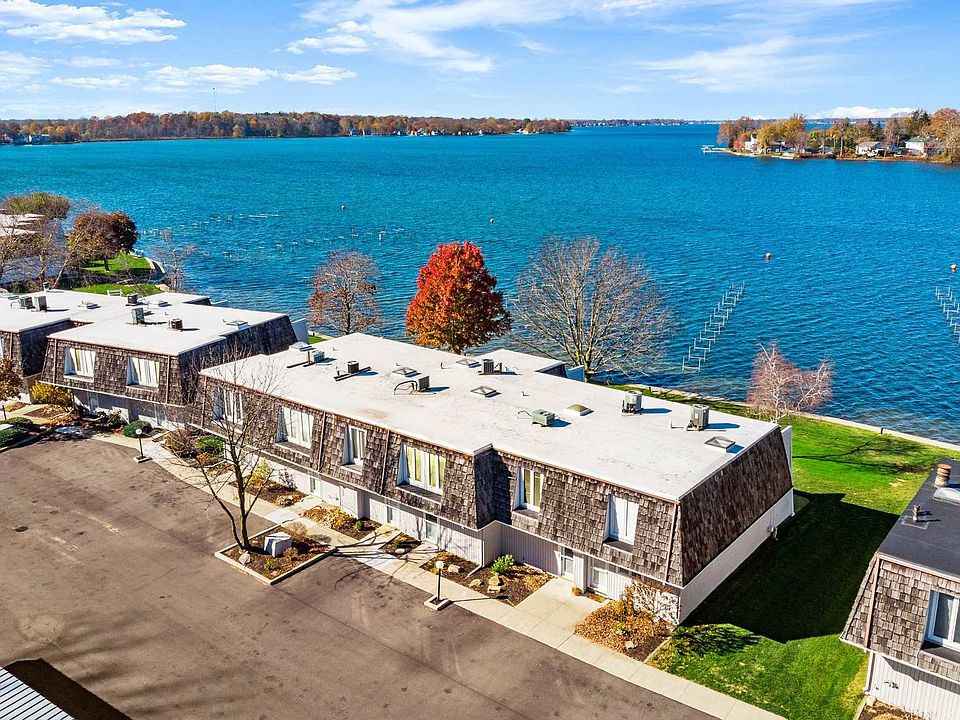 This 2 bedroom Runaway Bay Lakefront Condo is ready for you! As you walk inside you will notice the brand new vinyl plank flooring in the living room as well as the tiled kitchen floor and half bath. You will take in the most beautiful view of Lake Wawasee through the sliding glass doors which lead you out to your lakeside covered patio. From the living room, spiral stairs lead you to the second level featuring brand new plush carpeting along with two bedrooms and a full bath. The master bedroom features a lakeside sliding glass door that leads you to your lakeside balcony. Outside you will find covered parking, your own storage unit, association swimming pool and pier space at your backdoor. The maintenance-free lifestyle allows you more time on the lake while spending quality time with friends and family. Lake Wawasee is Indiana's largest natural lake and offers over 3500 acres of water and 25 miles of shoreline to enjoy boating, skiing, tubing, as well as great restaurants that you can reach via boat.