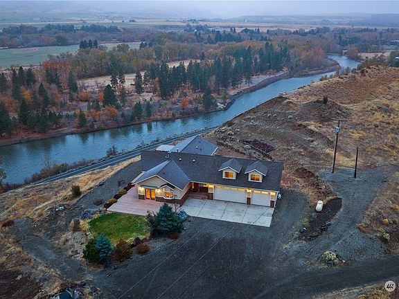 Dramatic Yakima River views from this custom built 3 bed/3.25 bath + office home featuring 2,562 SqFt & 11.96 Acres. Natural elements, elegant design, in a tranquil location creates such a warm experience that welcomes you home. Impressive living room w/ gas stone fireplace, plank vaulted ceilings & picture windows that opens to the dining room & well-appointed kitchen w/ wood floors, granite counters/center island & walk-in pantry. Main level primary suite featuring walk-in closet, custom tile shower & soaking tub & private access to the expansive deck w/ hot tub. Large separate guest bedroom w/ dormers & 1/2 bath, office w/ double doors, & spacious 3 bay garage. Close proximity to Cle Elum, Suncadia resort, downtown Ellensburg & I-90.