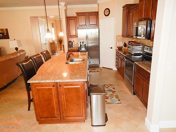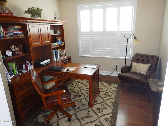Beautiful 2 bedroom 2 bath Tifton model home with 4 foot garage extension located in Stone Creek. Hardwood floors and porcelain tile throughout. New Pella double hung thermal windows with plantation shutters and enclosed lanai with glass windows and shutters. Master bath has large walk-in closet and shower. Raised vanities and toilets with marble counter tops. Kitchen with open floor plan with granite counter tops and maple cabinets. Large inside laundry room with sink. Reverse osmosis system.