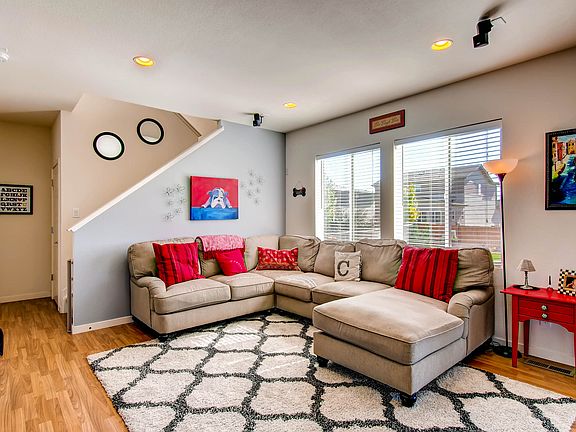 Welcome home to this beautiful contemporary home in Reunion. Located on a large corner lot, this home has it all! The main floor features upgraded flooring, a dining room, a powder room, a large great room with upgraded lighting, a gorgeous kitchen with granite counter tops, stainless steel appliances and a large island and is wired for surround sound and security system. The upper floor features a large loft area with upgraded lighting, a laundry area, 2 bedrooms, a full bathroom and a large master suite with private master bathroom and walk in closet. The basement is ready for your finish and offers plenty of room for storage. Enjoy gorgeous Colorado mornings and evenings from the covered back patio, and spacious deck in the newly landscaped yard. Your search is over....this is the one! Great community with HOA hosting several events throughout the year such as movies, music in the park, etc.
