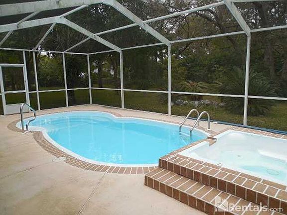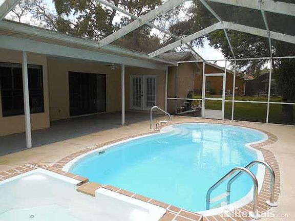 Oakridge Estates 3 bedroom, 2 bath, 2 car garage home. Screened in ground pool sitting on 1/2 acre lot. Built in 1990 with 1,565 sq ft of living space. Available first week of Sept..Spa at end of pool is not working.