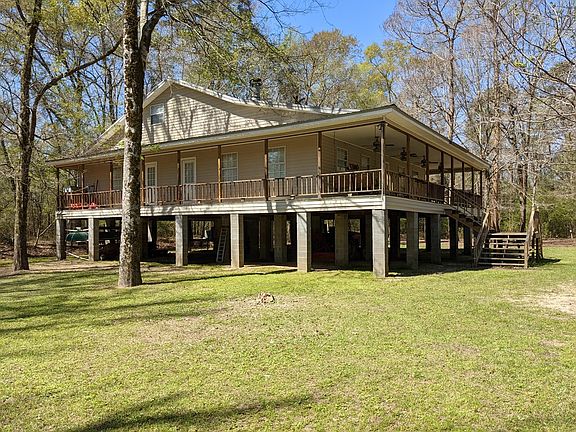 Looking for a get-away? This splendid two-story home, situated on 6.8+/- acres in Walthall County, MS is it! The five bedroom, two bath home is located seconds from the Bogue Chitto River and has been raised 7 feet to ensure safety. The three-sided wrap around porch provides a picturesque view of the surroundings, while the trees provide cooling shade for warm afternoons. The large, open concept main room offers plenty of space for family and friends to gather. The spacious kitchen has room for multiple cooks and counter space galore. Upstairs are two bedrooms as well as a common area looking down on the main room. A "Jack and Jill" bathroom connects two of the downstairs bedrooms, while the larger bedroom is just off the kitchen. A large pavilion and fire pit provide outdoor enjoyment and the yard offers ample room for outdoor activities. For the past two years, this property has been used as an Air B &B; the seller will share financial records upon request.
