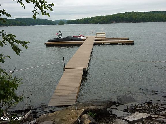 Lake Wallenpaupack Unique 3 Acre Lake Rights property. Property offers 3 units, 2 car garage, *4 Boat Slips (*Buyer to pay for slips to be built and added to community Dock with other fees for maint., et al) Walk or take a golf cart down the path to the lake. Great for large family; Family members can have their own place at the Lake! Excellent Location, No Short Term Rentals. Yearly only. The approximate SqFt shown on MLS includes all units. (3 Acres to be Subdivided from Original 4 Acre parcel & to include Path to Lake & 100' of lakefront). Taxes, Tax ID, et al TBD prior to settlement.. Survey Map on MLS is NOT final. Shows 4 acres currently without subdivision (to be done) Dock on MLS photo Not included.