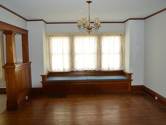 Beautiful woodwork with original hardwood floors. Large dining room with window seat. Living room has French Doors that lead to the den. Kitchen has updated cabinets with informal dining area. There is an oversized garage with lots of storage and off street parking.
