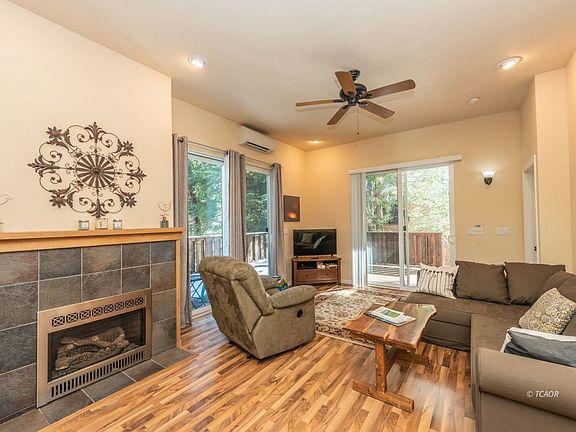 Amazing home in Covington Mill, a small historic community very close to Trinity Lake. This home can be a fantastic primary residence, investment home, vacation home, or vacation rental (currently brings in year-round income). This 2Bd/2Bt, 896 sf. home comes w/2 separate parcels totaling .45 acres. The 2nd parcel already has a septic system installed for a 2 bedroom home. In the existing home you will find efficient use of space and lots of storage, along w/custom features for comfortable living. It boasts 10' ceilings, large double pane windows & four 8' tall sliding glass doors, bringing the outdoors inside w/views of the surrounding woods. The home boasts stainless steel kitchen appliances, a new Whirlpool stackable washer/dryer, propane fireplace and stove, mini-split heating/cooling system, custom fixtures, recessed lighting, custom birch cabinetry & porcelain tile countertops.