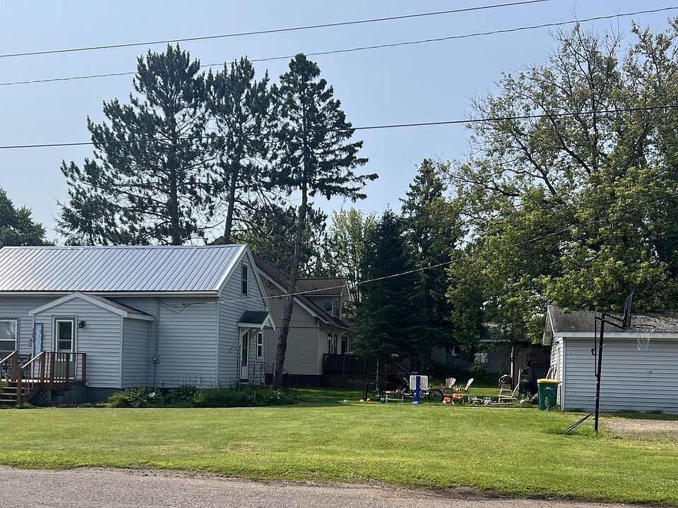 In the heart of town this home features 3 bedrooms, 2 baths including a large primary bedroom on the main floor, with a completely re-done primary bath, upstairs you will find two bedrooms. Enjoy the eat-in kitchen with spacious oak cabinets, large living room, metal roof on home, 2 car detached garage all sits on a substantial corner lot.