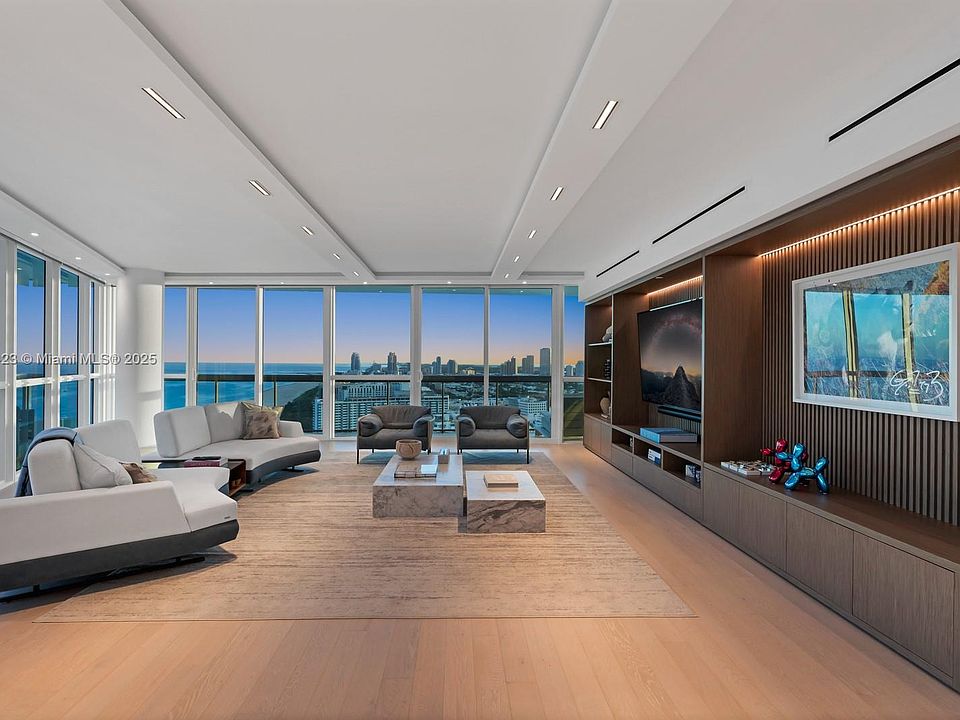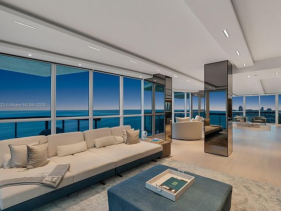 Step Inside With Me! This iconic Setai Skyhome unveils to a 63’ oceanfront main salon with stunning sitting room and TV lounges. Spanning over 6,000 SF, this 4-unit combination floorplan represents the 2nd largest residence in the building where every social area & bedroom offers endless views. The custom reconfiguration includes white oak floors, sleek modern kitchen, tray ceilings, wood paneled millwork, Lutron automation, and marble baths with heated floors. Entertain in style at 2 bar settings and a world class oceanfront 3-row theater. Epic downtown skyline vistas and sunsets are afforded to the dining & family rooms as well as glass encased study/5th sleeping quarter. In the heart of Billionaires Beach, the 5 star Setai offers 3 restaurants, known spa & beach for celebrity sightings.