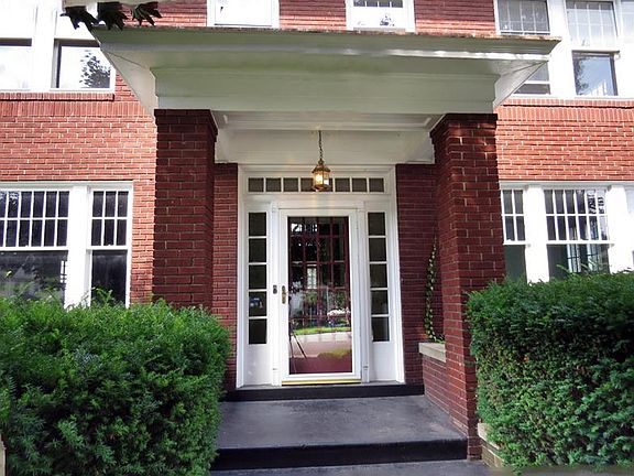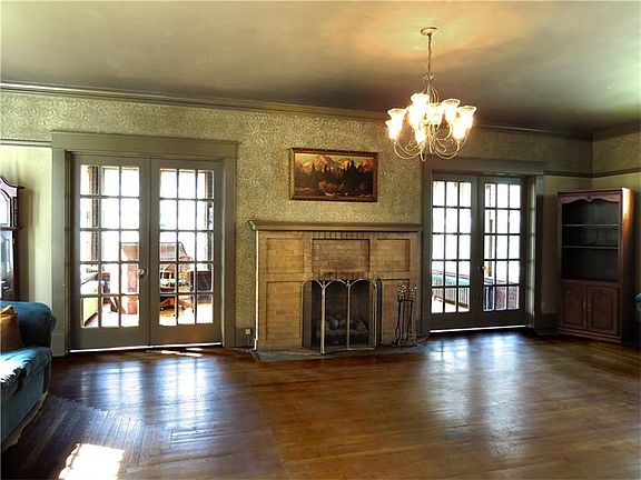 Beautiful 4 bedroom, 2.5 bath, all brick mini-mansion with private pool. Corner lot. Dramatic large entry foyer, 2 brick fireplaces, 12 X 15 heated finished attic, 2 stairways, dumb waiter, sun room, breakfast room, 2 swinging doors from kitchen, 4 french doors, hardwood floors, cove molding, beveled glass, high ceilings, brick 2 car detached garage, concrete drive and pool decking. Very usable basement with potential for 2 game rooms. New: carpet, boiler, pool liner, bathrooms. Kitchen has been remodeled.