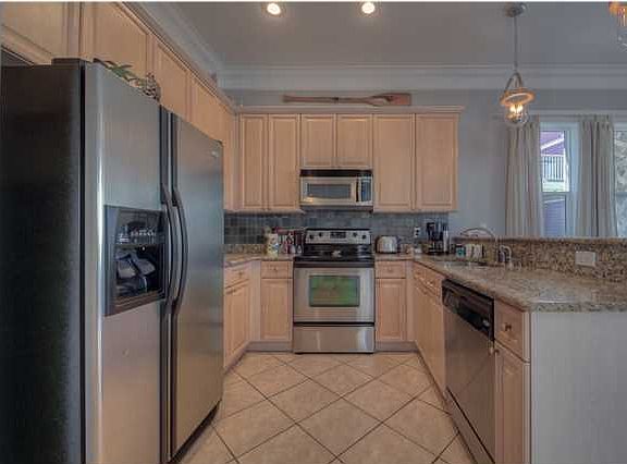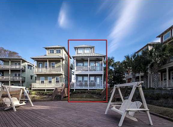 Beautiful 4 bedroom/2.5 bath cottage in the exclusive community of Waterside Village. This cottage was just recently painted a beautiful gray on the exterior as well as the main floor. The interior features wide crown molding, chair rail, 10 ft ceilings, granite counters, tile floors on the main level, and custom lighting in the kitchen and dining area! Sit on the covered back deck on both floors and soak up the serenity overlooking the canal. The community deck is right behind you providing a great space for outdoor entertaining. This cottage is not behind the gate which actually gives you easier and more parking ability! The Waterside community has a fabulous pool area as well as day docking with access out to the gulf. Just a block to the beach as well as a quick walk to several restaurants and shops!!!