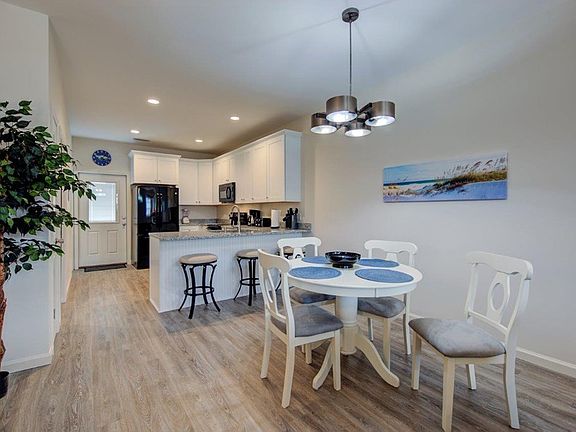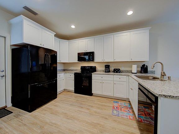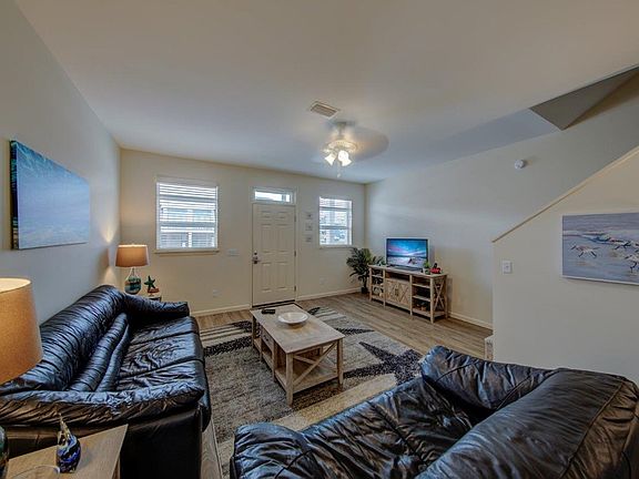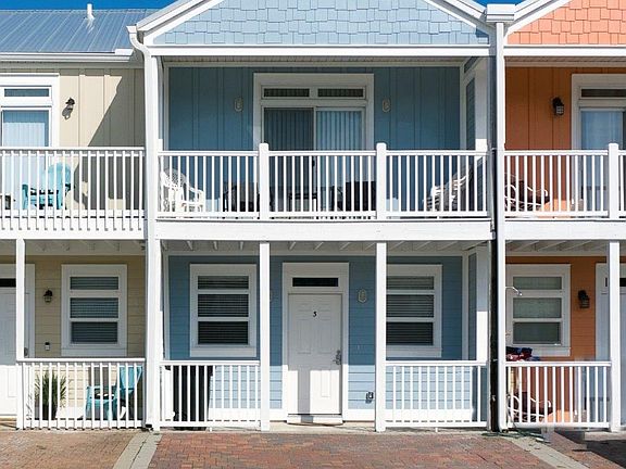This renovated townhouse features 2 bedrooms + bonus room (currently used as a bedroom). Beachside of Hwy 98 just a block's walk to the beach, no crossing the highway. This entire complex has a new metal roof, hardiboard siding, paver driveways. This unit is brand new on the first floor: sheetrock, insulation, paint, flooring, granite counters, kitchen cabinets, appliances, HVAC. The first floor is an open floor plan so you can enjoy your guests while preparing dinner! There is a small pantry + understair storage for an owners closet. All bedrooms are upstairs w/ new carpet + a full bathroom w/ 2 separate sinks. The master bedroom has a small gulf view from the balcony & a walk in closet. A private backyard is available for the pups and cookouts and has a concrete patio with a new grill + 2 palm trees. Furnished & Equipped!