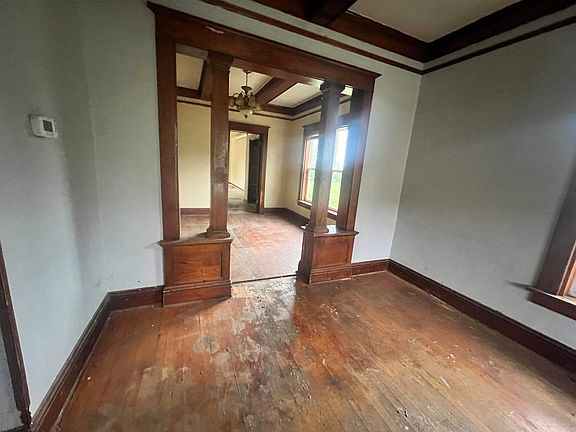 Welcome to small town living! This 3 bedroom, 2 bath home has tons to offer. From the front door you are greeted with nice open living room, leading to the dining room with some original wood work. Also, you will find the oversized primary bedroom with attached en-suite and walk in closet on the main floor. The remaining is the 2nd bathroom and kitchen on main floor. Upstairs you will find two generous sized bedrooms. Outside find a nice yard and a covered parking area.