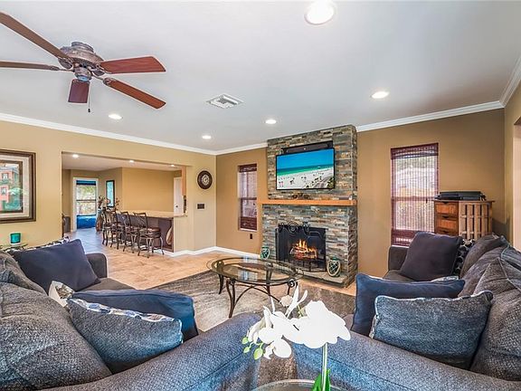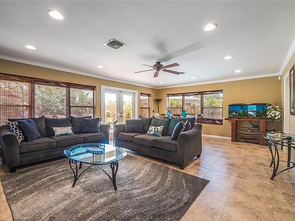 • Interior Features: Ceiling Fans(s), Master Bedroom Downstairs, Crown Molding, Window Treatments, Solid Surface Counters, Solid Wood Cabinets