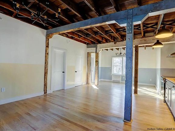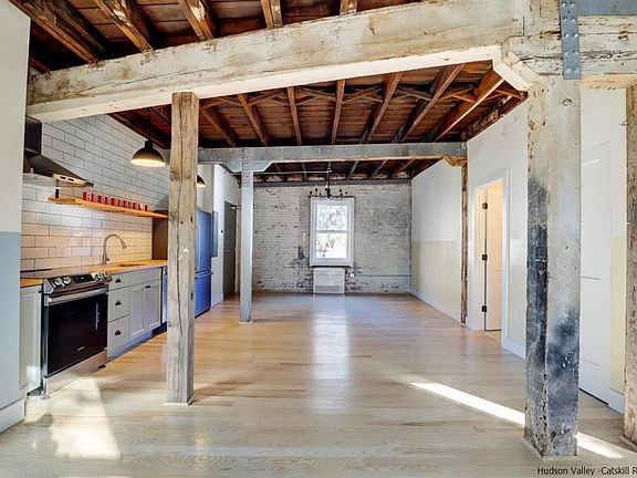 Stylish loft-style apartment in Kingtons Historic Rondout District. Steps away from the Waterfront and the popular restaurants, shops, galleries and museums of Abeel St and Lower Broadway. This pristine space has been gutted and thoughtfully refitted mixing original architectural detail, reclaimed materials and contemporary design - A masterful blend of old and new, industrial and residential. So many beautiful features here: Exposed brick, vaulted ceilings ; original support beams; new hardwood flooring. Add to all of this a sleek new kitchen with stainless steel appliances, subway tile and pendant lighting; a luxurious bathroom with large tiled walk-in shower, and the great convenience of an in-unit washer and dryer ( to be installed once lease is signed) A new mini-split system provides efficient heating and cooling. Come take a look at this special space. Unit 3 is accessed from W Union St. Owner pays for water. Tenant is responsible for other utilities. Pets may be allowed. $20 application fee for credit and background check.