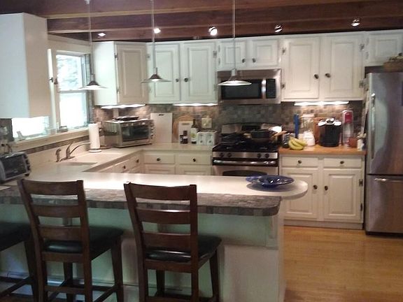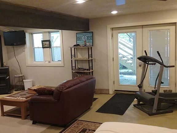 Lovely home on a private wooded lot. The lower walk out level is light filled by four windows and French doors. Pellet stove, ceiling fans and full bath with steam shower makes a great family room or guest quarters. The main level is an open floor plan with fireplace. It opens up onto a large wrap around deck extending your living area into the wooded surroundings. The Sunroom at the rear of the home is glassed in for wonderful views of nature and would make a great guest room or an office. with exterior access. The top floor has three bedrooms and the master bedroom has a bathroom and slider out to a balcony. The home is protected by back-up generator. The property boasts stone walls and an outbuilding with a finished interior and electricity. Far away yet close to everything being only minutes to Northampton, Florence, Williamsburg. You will want to call this place home.