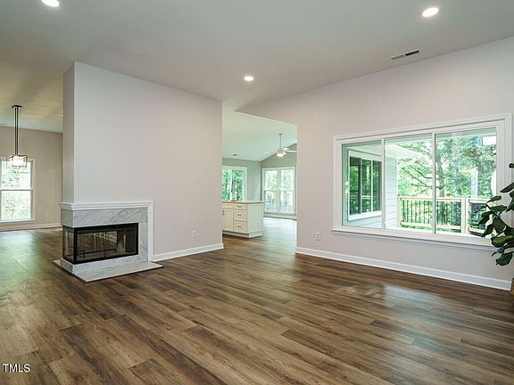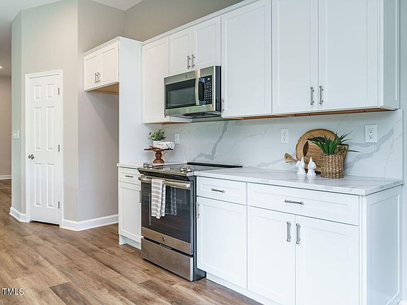 Remodeled Ranch only a mile from downtown Cary! You'll love cooking in this bright and airy kitchen with new cabinets, quartz countertops and stainless steel appliances. Large island opens to Sunroom with views of backyard. Dining room will fit even your longest table for meals or game night. Relax in your spa-like primary bath with oversized walk-in shower. The spacious double vanity boasts Carrara marble top. 2 guest bedrooms share a 2nd updated bath. New LVP floors throughout. No carpet! Interior and exterior freshly painted. 10' ceilings in main living areas. Vaulted ceilings in Sunroom and 2 of 3 bedrooms. Most windows have been replaced. Washer, dryer, garage storage cabinets and workbench to stay. No HOA!