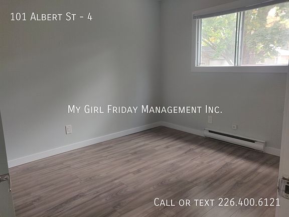 Get ready to live your best life at 101 Albert St, Unit 4! Located in the heart of Waterloo, this amazing apartment is perfect for WLU or UW students, young professionals, and so much more! Imagine being just a stone's throw away from the Bricker Academic Building, banks and financial institutions, Uptown Waterloo shops, restaurants, and entertainment, and having a 1-minute walk to the route 7 bus stop. Talk about convenience! This fantastic unit features: A bright and spacious living room, perfect for studying or working from home, relaxing, or entertaining friends! A shared coin laundry room in the basement, because who doesn't love the convenience of doing laundry at home? A shared covered front porch, ideal for watching the rain! A beautiful park right behind the building, providing a peaceful escape from the hustle and bustle of student life! Yes, you read that right, this building backs onto Waterloo Park! This cozy 3-bedroom, 1-bathroom unit is waiting for you! Important details to keep in mind: 1 parking space is available for this unit (sorry, no exceptions and no visitor parking!) Heat is electric, and electricity is not included in the rent. Water is included, though! Don't miss out on this incredible opportunity to live in a fantastic location! Apply now and make 101 Albert St, Unit 4 your new home!