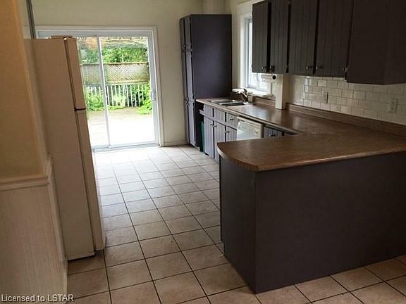 Lovely ½ storey set upon treelined street in Londons fantastic Rowntree Park, steps to Old South. Schools, parks, tennis court, shopping and LHSC all close! Carefully maintained and thoughtfully kept. This 2-bedroom (easily convertible to 3-bedroom), plus 2 full bath is versatile with a full separate dining room with French doors (if one preferred a main floor living area), large front living room and eat in kitchen + a full lower level that can be used as a recreation or excellent storage. Boasts a sprawling, fully fenced, south-facing rear yard with garden beds, sundeck and trellis. Excellent private drive with parking for 3. Patio door from kitchen onto sundeck is ideal for summertime entertaining. Upper level offers generous bedrooms, oversized windows and rail door full bath. Updates include: vinyl clad thermal pane windows; 100 amp electrical; high efficiency furnace + A/C; and lower level drywall and carpet 2023. Truly and excellent home and property!!! Come see for yourself!! NOTE: Photos taken prior to current Tenancy.