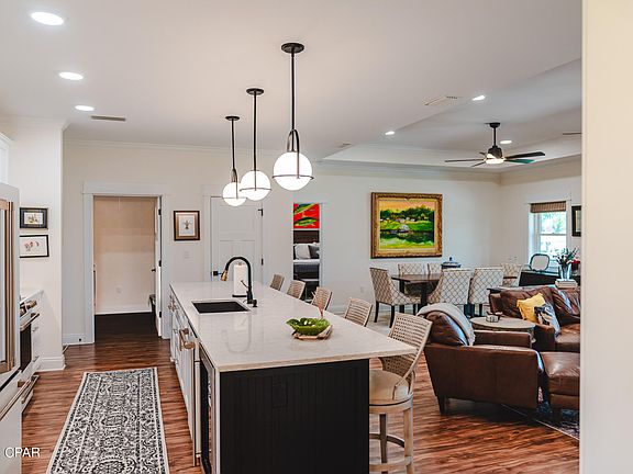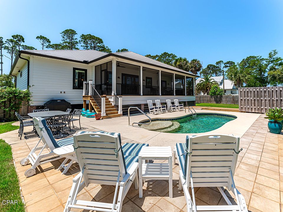 Under contract - taking back ups! Just listed is one of the nicest homes in Port St. Joe and it's located in possibly the best location sitting on a large 1st tier bay lot overlooking St Joseph Bay and Constitution Park. This is a luxurious home with GE Café' appliances, wine refrigerator, quartz countertops, custom countertops, LVP flooring throughout, and a great screened in back deck that leads to a big fenced in back yard with a nice saltwater pool and plenty of area for relaxing. This home is in fantastic condition and is relatively brand new and was completed in 2020 and built to all of the new codes that make insurance very reasonable. Lots of extras including a natural gas whole house Generac generator, heated and cooled garage, irrigation well, Rinnai endless hotwater heater, Solana woven blinds and window treatments, and some furniture is being included. This is a rare opportunity to buy a newer home in this neighborhood of Port St. Joe.