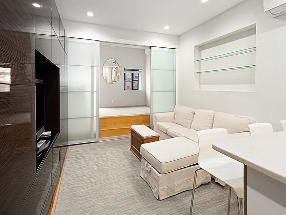 Perfectly designed 1 bedroom for comfortable living in the heart of the Lower East Side. Recently updated with modern finishes and smartly designed 1 bedroom is now available for rent. The kitchen with a breakfast bar is equipped with a 4 burner gas cooking stove, a marble kitchen island, plenty of cabinets to store needed cooking supplies and a full size fridge. Living room includes a large storage space that also hosts the TV set. The bed frame is lifted and can accommodate a mattress or a slick additional bed frame. There is a closet. The split air conditioning unit provides heat and cold air as well as serves as an energy efficient alternative. A bathroom with a stand-up shower features beautiful and tasteful finishing accents. The apartment can be rented furnished or unfurnished. Please reach out to set up a showing!