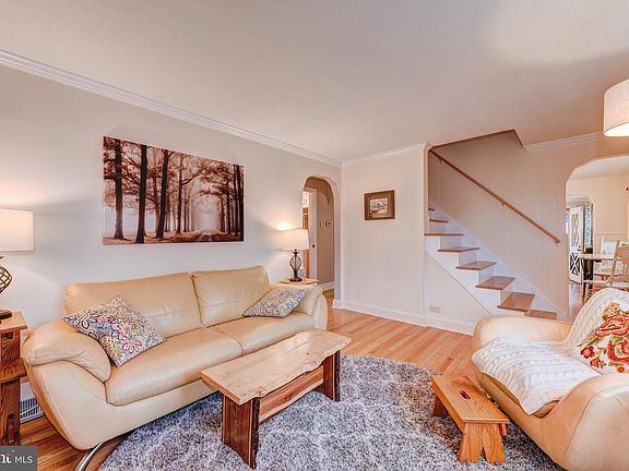 Welcome home to this GORGEOUS corner lot cape home in the Washington Heights section of Morrisville Boro. You will immediately notice all of the unique charm and character this home offers. Beautiful refinished oak flooring and fresh neutral paint are featured throughout in tastefully calming color tones. Enter through the front door and step into the spacious living room, complete with wood burning fireplace with live edge walnut mantle and large bay window to allow for abundant sunlight. On your right is the bright and cheery eat-in kitchen complete with gas range cooking, built in microwave, newly installed ceiling fan and plenty of counter and cabinet space. There is also a bonus mud room right off of the kitchen with second side entrance and large coat closet with shelving for your storage needs. The spacious dining room is located off of the kitchen providing for easy entertainment and comes with newer ceiling fan and windows for natural light. A few steps down the hall from the dining room is the full bathroom featuring a tub/shower and an updated vanity with new faucet. There is also a spacious first level bedroom complete with ceiling fan and windows for natural lighting with new blinds and curtains. Upstairs has two large bedrooms, each outfitted with solid wood paneling which offers a cozy log cabin feel and comes with newly installed doors and window blinds. The nicely sized and partially finished basement has endless potential and was recently enhanced with LED lighting and new carpeting. There is also a laundry room with a closet for all your storage needs and has Bilco doors to the outside. This home comes with a GIGANTIC 2-car detached garage with a BONUS separate space that can be used for an office, gym or extra storage! Perfect for those with home businesses. There is also a separate garden shed in the yard. Other recent upgrades include the stairs that were replaced with wood sourced from an Amish mill, rebuilt double chimney crown (2019) and replaced baseboards throughout. Located close to Snipes Farm offering green space and walking trails yet conveniently close to Route 1 and I-95 for easy commuting. Don’t miss your opportunity to see this beautiful home! **Seller is also including a one year home warranty to the future buyer**