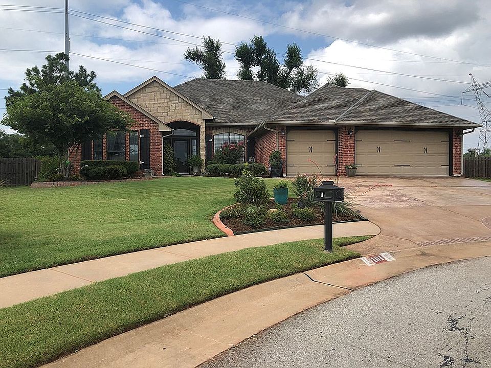 This beautiful home is located in the popular addition of Coffee Creek in Amberwood. The home is decorated to the hilt inside and has lots of landscaping in the front and back yard with walking trails and a greenbelt just outside the back gate so you have no neighbors behind the property.