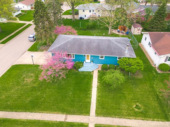 Cute-as-a-button ranch on corner lot! This well maintained, updated home is in great condition! Side-load, 2 car drive-under garage with HUGE fenced backyard, mature trees, patio area w/ fireplace and *NEW* 2019 deck to enjoy your morning cup of coffee or evening glass of wine. Hardwood recently refinished throughout home! Natural light shines through your updated windows! Kitchen has all stainless-steel appliances featuring double-oven and great layout for your dining room table with easy access to deck. Remodeled full bath, whole house fan system and blown insulation in the attic! Basement recently remodeled and refinished featuring accent ceiling and new carpet! *NEW* 2018 water heater, *Updated HVAC 2020*, *NEW* sump pump and trenching 2017. ALL appliances stay! Unit 5 schools! Come make this home yours today!