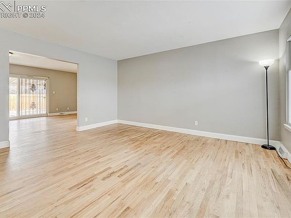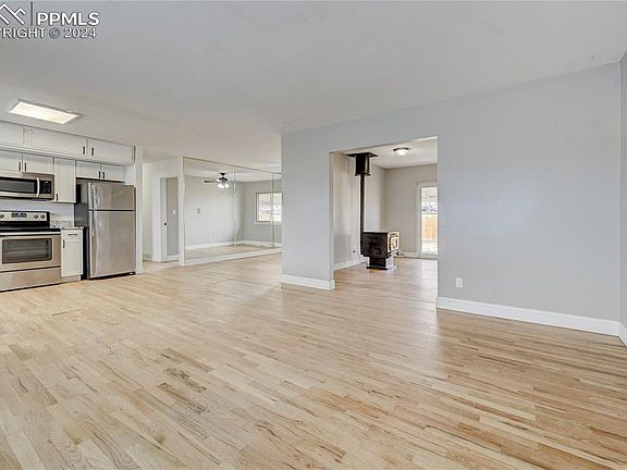 Come and see this awesome home with natural hardwoods throughout! DON'T MISS THE VIDEO TOUR!!! Wide open floor plan, corner lot, large back yard with fire pit and covered patio. Full bathroom with jetted tub. Updated kitchen cabinets and counters and updated vanities in the bathrooms. Large Laundry area with additional storage and both a living room and family room for gathering. Wood Stove and Walkout in the Family Room. Easy access to military bases and all Colorado Springs has to offer! This home has been cleaned and has new blinds and it is ready for your finishing touches to make it your own! Come take a look today!