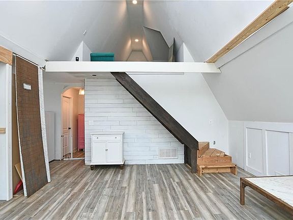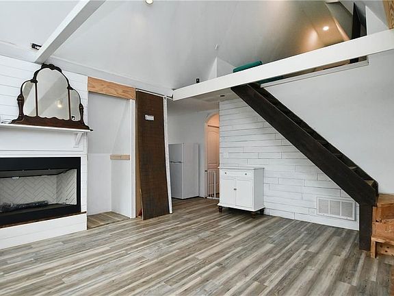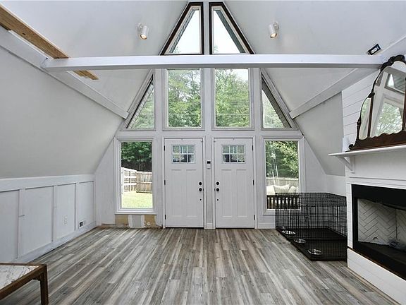 You don't find A-Frame Homes with this type of Architecture everyday. This little piece of Architectural history allows you to add finishing touches and make it yours. The home has been a work in progress, lovingly renovated over the years. It was taken down to the studs and renovated with all new drywall, insulation, plumbing, electrical, new windows, sub-flooring, LVP flooring, and hot water heater. (Ask for the Full List of ALL the work that has been done and materials conveying with the sale.) The house offers bright natural light throughout with the large welcoming windows accenting the front of the house. Inside, the kitchen has all new cabinets, open shelving, and new countertops to be installed or choose your own. The adorable bathroom has a claw foot tub with a one of a kind vanity. You have 2 bedrooms on the main level with one having a spacious walk-in closet. The loft area is currently being used as a master bedroom, but could be another living space overlooking the main living area. Outside you have a fenced in backyard with a large storage building. The front yard has a fence for privacy and a separate fenced area that would be perfect for furry friends or a chicken coop. The back deck can be finished and expanded if you are looking for a larger outdoor living space. Once this home is finished, it will Truly be a Show Stopper! This is an 'As-Is' sale. Sellers and Buyers acknowledge that Seller shall make NO Repairs, unless agreed to in writing. Talk to a Lender about financing, Cash and Renovation Loans are the best options. It will not qualify for FHA, VA or USDA loans.