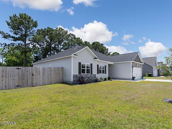 Welcome Home to Coastal Comfort! Nestled in the heart of Holly Ridge, this stunning 3 bedroom, 2 bath home, with a bonus room, that is located on a corner lot, offers the perfect blend of modern luxury and coastal charm. Step into spacious living with a flowing layout, perfect for entertaining guests or simply relaxing with family. Enjoy having the extra space, which made a perfect bonus room that is flooded with natural light and is equivalent to the same size as the other bedrooms. The huge master bedroom features a large walk-in closet, dual vanities in bathroom with a stand alone, stand up shower and garden tub. You will want to embrace your inner chef, in the stylish kitchen that is boasting with a center island, sleek stainless steel appliances, plenty of counter space and cabinets, with also a built-in workspace (desk). Escape to your fenced in backyard, which is completed with a fire pit and a shed for storage or hobbies. This is conveniently located just minutes away from beaches, MARSOC, Wilmington, Hampstead, Sneads Ferry and Jacksonville. Don't miss your chance to call this coastal retreat home, schedule your private tour today! Seller's are offering $5,000 use as you choose to buyer's.