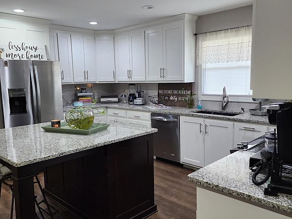 This home is a must see! Totally renovated ranch style home has 4 bedrooms, an additional room that could be a study or nursery, 3 full baths, nice kitchen with plenty of white cabinets, granite countertops with island, and all stainless steel appliances remain. This is open to the living room with fireplace. This home has hardwood laminate flooring throughout and a porch across the front of the home. Walk out the back onto a covered decklike patio facing an in-ground pool with a diving board that is perfect for summer fun! Both the storage building in the back and the storage attached to the house will remain.