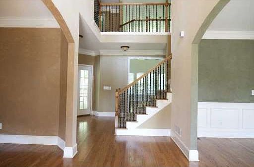 FABULOUS HOME W/ALL THE UPDATED FEATURES! ROCKING CHAIR FRONT PORCH, WONDERFUL TRIMWORK & HARDWOOD FLOORS, FORMAL DINING W/WAINSCOTING DETAILING, FORMAL LIVING RM/OFFICE/STUDY, GRAND 2-STORY GREAT Rm W/FIREPLACE & WALL OF WINDOWS VIEWING PRIVATE WOODED BKYD, GOLF COURSE VIEW IN FALL/WINTER, GOURMET KITCHEN W/BEAUTIFUL CABINETS & GRANITE COUNTERS, ISLAND, GUEST BDRM ON MAIN, LG MSTR STE AND MSTR SPA BATH, LG SECONDARY BDRMS, UNFIN. BSMT. This floor plan belongs in the Overlook but was perfect for this oversized corner lot.