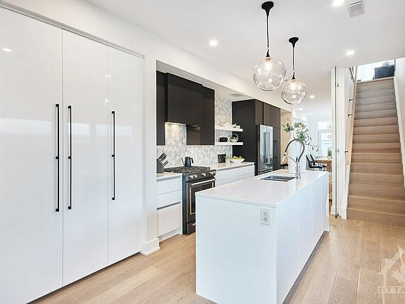 Modern luxury in one of Ottawa's trendiest neighborhoods. Walk south to the Hintonburg vibe on Somerset, east to Little Italy & Chinatown, west to the Parkdale Market & Wellington W, or north to riverfront paths & Lebreton Flats. Public transit is close by to whisk you away to downtown or beyond. Attention to detail throughout starts with the kitchen with designer appliances, sleek cabinets, open shelves & a backsplash feature wall. This space is also hardworking with ample storage & counter space, plus a built-in desk is perfect for working from home. A roomy dining rm with access to a deck is made for enjoying meals prepared at home or picked up at any one of the local restaurants. One level up is the living rm that overlooks the dining rm below. Large windows infuse all 3 bedrms with natural light while the beautifully appointed baths invite you to stay a while to pamper yourself. The lower level with a separate side entrance is open to opportunities such as an in-law suite. 2022-02-03