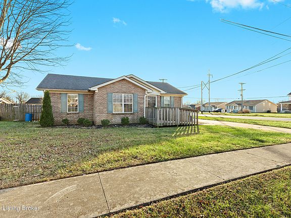 Welcome to this corner lot split ranch brick home located in the Cottage Grove subdivision in historic Bardstown, KY. This house would make a spectacular fist time purchase or rental investment property for the right buyer looking under 190k. Complete with vaulted ceiling in living room, generous size dining area off the kitchen-separate laundry room and primary bedroom with trey ceiling and ample closet space. All appliances remain in the home making it truly move in ready. Outside you will find a large patio area for entertaining and private fully fenced in yard. With a little bit of cosmetic love you can put your own finishing touches on it and make it your very own. Lots of room to build a garage on this corner lot as well! Schedule a showing today.